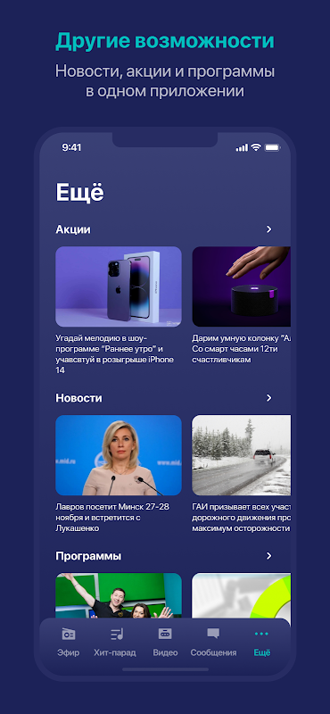 Авторские проекты, шоу известных ди-джеев, хит-парад, а также лёгкие интерактивные программы не заставят вас скучать. Наслаждайтесь качественной зарубежной и белорусской музыкой, бесспорными хитами в приложении «Радио Мир Беларусь»