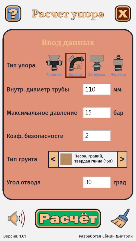 Расчет упоров трубопровода 1.01