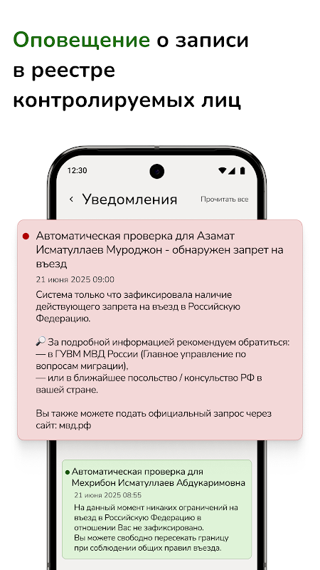 ⚠️ สำคัญ: นี่เป็นแอปพลิเคชั่นที่ไม่เป็นทางการ เราไม่ใช่หน่วยงานของรัฐและไม่ได้เป็นตัวแทนผลประโยชน์ของกระทรวงกิจการภายในของสหพันธรัฐรัสเซีย กระทรวงกิจการภายใน สำนักงานตรวจคนเข้าเมืองแห่งสหพันธรัฐ หรือหน่วยงานรัฐบาลอื่น ๆ ข้อมูลทั้งหมดจัดทำขึ้นจากแหล่งที่เป็นทางการแบบเปิดเผยเท่านั้น https://гувм.мвд.рф/