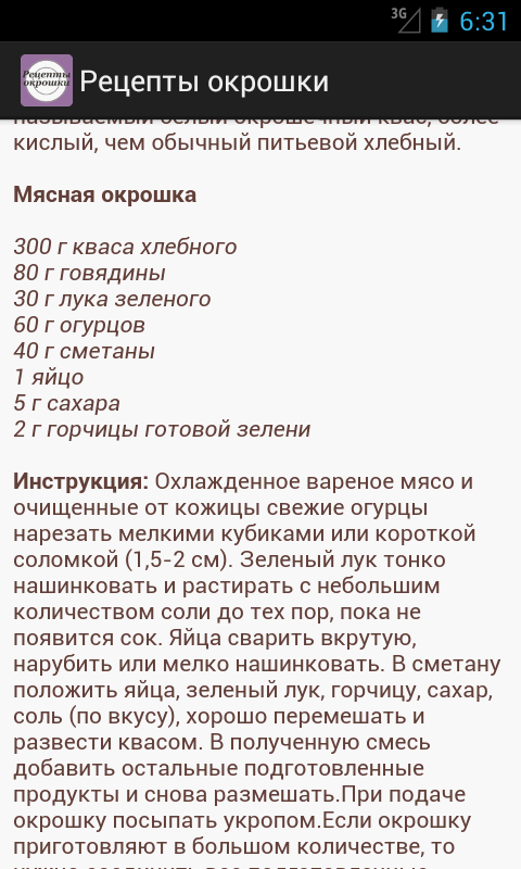 В приложении "Рецепты окрошки" собраны лучшие и простые рецепты изготовления окрошки: