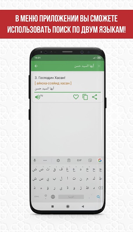 Приложение не только предоставляет доступ к большому и простому в обращении словарю, но и помогает научиться правильно читать арабский текст. В разговорнике вы сможете читать для начало из транскрипции и в дальнейшем сможете читать уже арабский текст. Именно этот подход для начало очень помогает новичкам.
