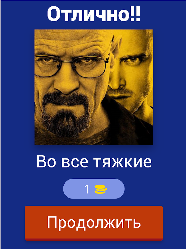В игре «Сериалы ТОП 50 - Тест о Лучших Сериалах» есть система подсказок, она позволит вам пройти уровень с сериалом, название которого вы не знаете или не можете вспомнить.