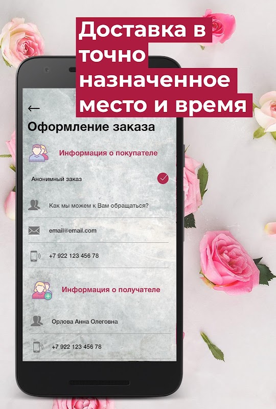 Мы обеспечиваем полную конфиденциальность при вручении заказа адресату. Доставка букетов происходит полностью анонимно.
