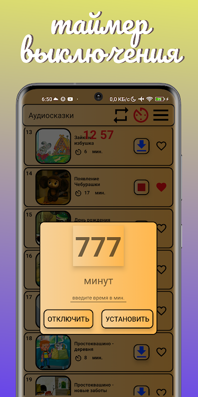 ในแอปพลิเคชัน "Audio Tales นิทานก่อนนอน" คุณสามารถทำเครื่องหมายนิทานที่คุณชื่นชอบได้และเทพนิยายเหล่านั้นจะปรากฏในรายการแยกต่างหากของนิทาน "โปรด"