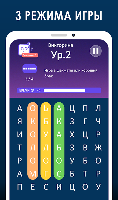 ในเกมนี้มีมากกว่า 10 หมวดหมู่ในแต่ละประเภทมีบางอย่างที่ต้องคิด! 4 โหมดเกมที่แตกต่างกันซึ่งจะมีการค้นหาคำศัพท์! มันเป็นสิ่งจำเป็นไม่เพียง แต่จะคาดเดาคำ แต่ยังพบพวกเขาในสนาม