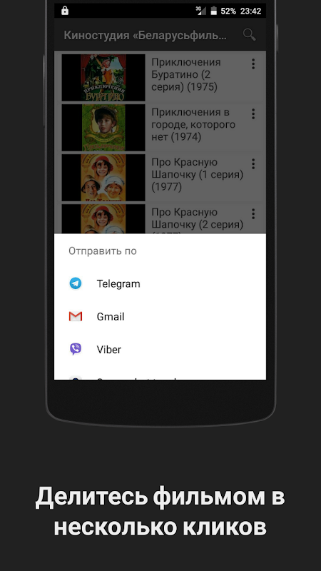- возможность отправить фильм друзьям в несколько кликов