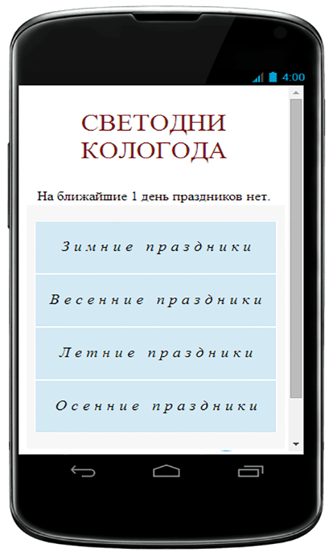 В данном приложении показаны старые славянские праздники, а также есть информер показывающий праздники на ближайшие дни.