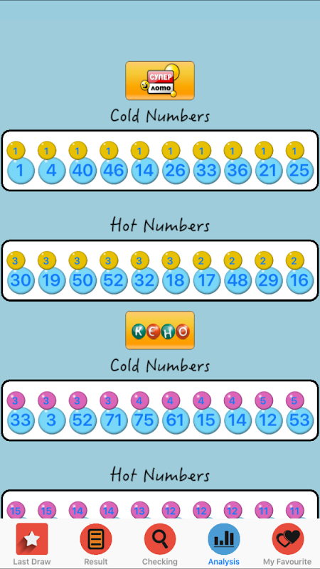 - Повна статистика останніх результатів розіграшу, а також аналіз, включаючи чет / непарне, високий / низький і спільного!
