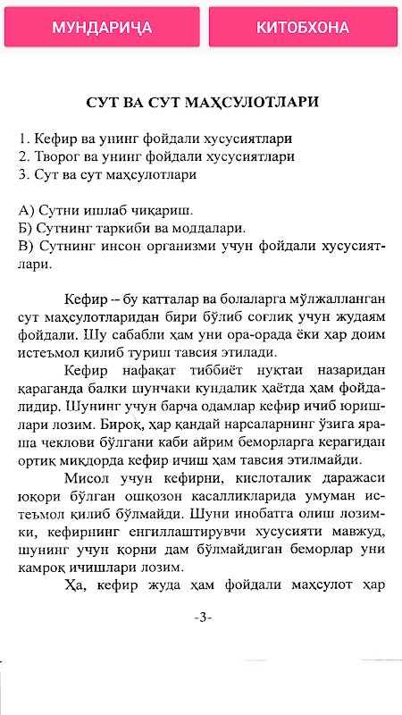 ข้อมูล Сут, кефир ва творог маҳсулотлари APK