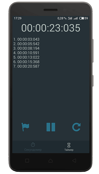 В режиме секундомера на экране отображаются интервалы вплоть до миллисекунд. Вы можете использовать секундомер как: