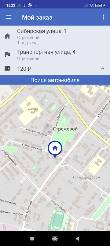 แอพลิเคชันสำหรับการสั่งซื้อรถแท็กซี่ในเมือง Strezhevoy