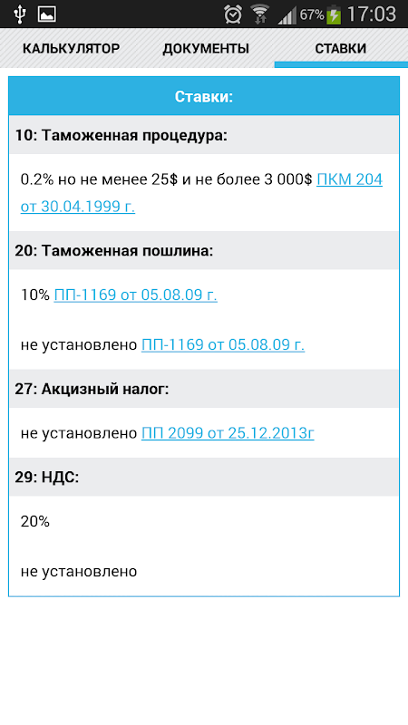 - просмотреть установленные ставки таможенных платежей для конкретного товара;