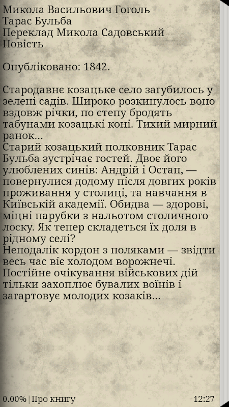 ข้อมูล Тарас Бульба (укр). Гоголь М. APK