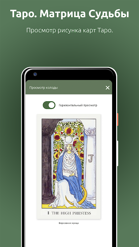แอปพลิเคชั่นไพ่ทาโรต์ช่วยให้คุณสร้างเค้าโครงไพ่เพื่อทำนายอนาคตรวมถึงวิเคราะห์อดีตและปัจจุบัน ผู้ใช้สามารถเลือกประเภทสเปรดและการตีความได้หลากหลาย รวมถึงหนึ่ง สาม ห้า เจ็ด และอื่น ๆ ไพ่ตลอดจนวิธีตีความต่างๆ รวมทั้งวิธีตำแหน่ง ตำแหน่ง และการรวมกันของไพ่