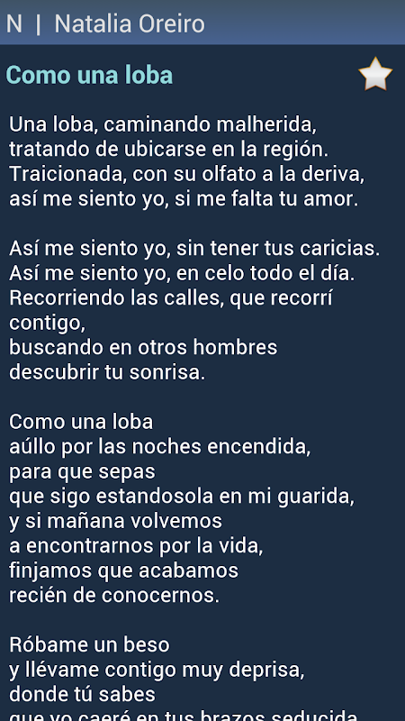 ในบทความนี้โปรแกรม "เนื้อเพลงในภาษาสเปน" ไม่จำเป็นต้องมีอินเทอร์เน็ตข้อมูลทั้งหมดที่มีการโหลดในประเทศซึ่งจะช่วยให้การเข้าถึงตำราของเพลงในภาษาสเปนทันที