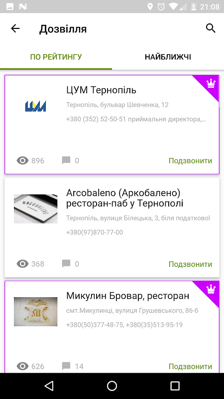 * шукайте будь-які організації в довіднику підприємств, їх контакти і розташування на карті. Додаток може визначати ваше місце розташування за допомогою GPS, Wi -Fi або стільникових мереж і знаходити найближчі до вас місця