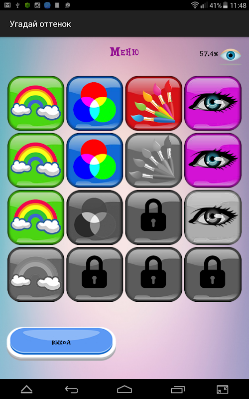 Приложение поможет вам узнать насколько хорошо вы распознаете оттенки, а пройдя все уровни вы сможете увеличить свою цветовую чувствительность до 100%. В приложении представлены 4 абсолютно разных вида уровней, которые по разному развивают цветовую чувствительность. Не расстраивайтесь если какой-то из уровней не будет даваться вам сразу, немного передохнув попробуйте снова. Так же доступен режим тренировки, для любителей более динамичной игры. В ближайшее время будут добавлены новые уровни а так же сетевой режим.