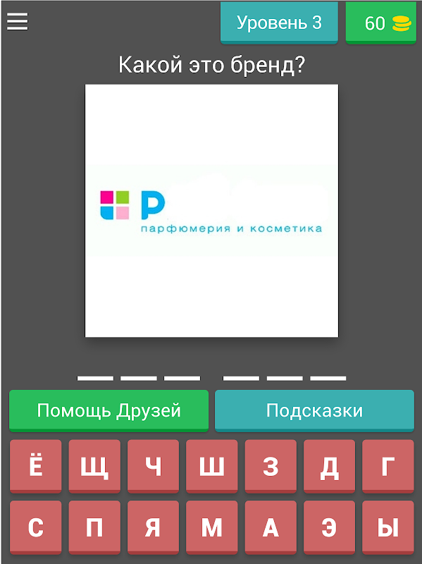 Суть игры заключается в том, чтобы угадать название бренда по логотипу, составив слово из букв, представленных на игровом поле.