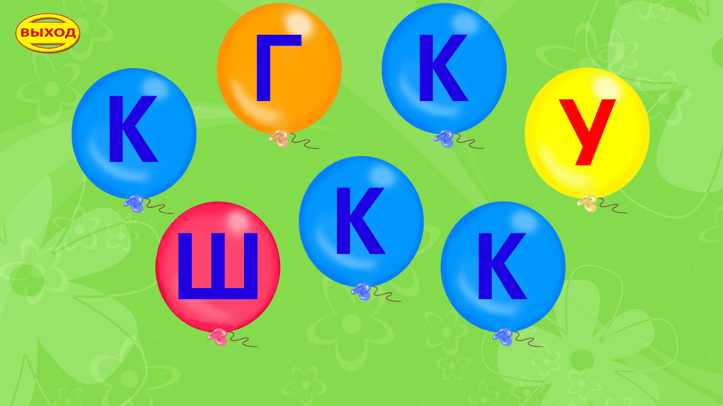 Приложение для изучения букв. На экране появляются воздушные шарики, на которых изображены различные буквы. Ребенку предлагается нажимать только на те шарики, на которых нарисована изучаемая буква. При верном нажатии шарик исчезает. Играя в приложение, ребенок учится отличать буквы одну от другой, узнавать буквы и искать их среди других.