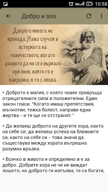 В приложението са подбрани негови мисли от беседите през годините. Това е едно зрънце от казаното от него, за: - аз и другите, за астрологията, за Бог, за аурата, за бъдещето, за вярата, за доброто и злото, за храненето.