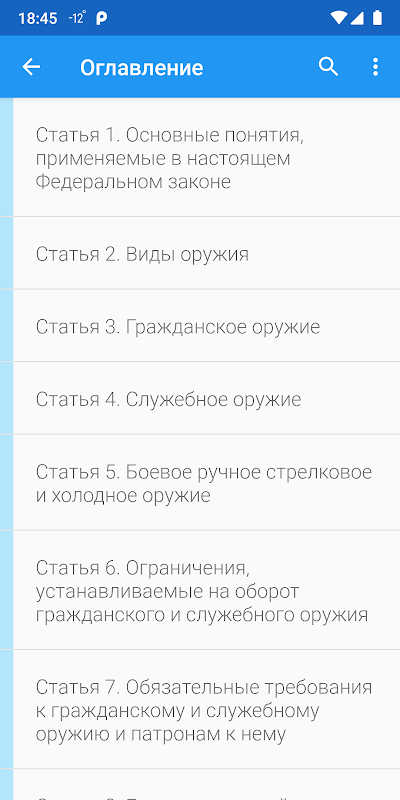 แอปพลิเคชั่นนี้เป็นคู่มือที่มีประโยชน์สำหรับกฎหมายของรัฐบาลกลาง "เกี่ยวกับอาวุธ" แอปพลิเคชันมีเนื้อหาทั้งหมดของกฎหมายที่เกี่ยวข้อง ณ เวลานี้