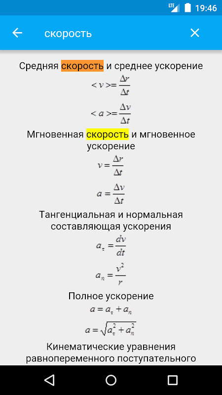 ● Каждый раздел программы (Формулы, Константы и Конвертер) тщательно систематизирован
