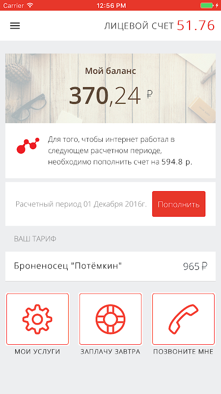 บัญชีส่วนตัวสำหรับสมาชิกของผู้ให้บริการอินเทอร์เน็ต "สูตรการสื่อสาร"