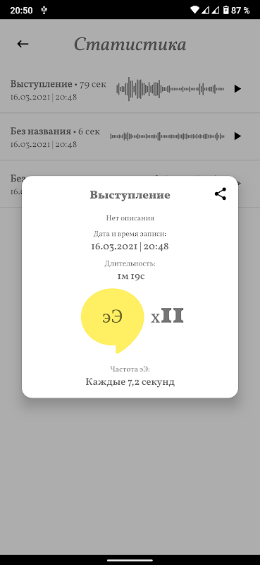 — Можно прослушать и поделиться сделанной записью на экране статистики.