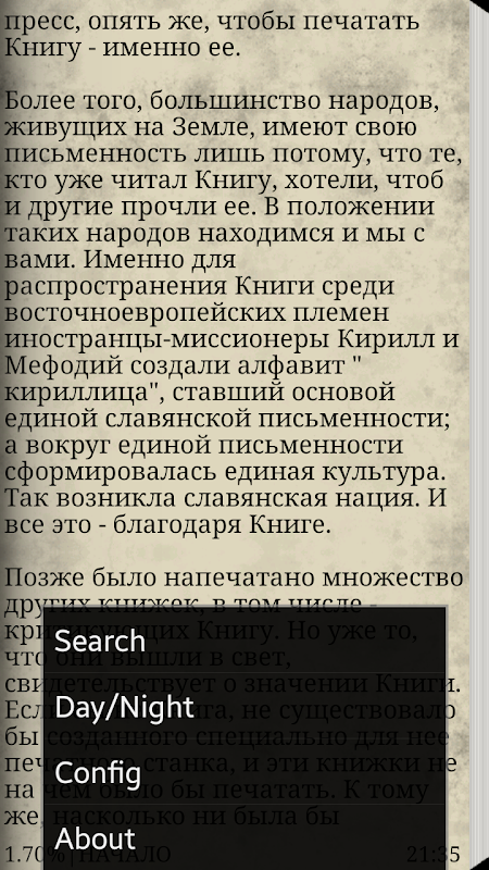 Речь шла о Книге. О Книге, которая единственно и может называться книгою, потому что в том смысле, в каком эта Книга является книгою, никакая другая книгою не является. Более того, все остальные книги мы имеем лишь потому, что существует Книга. Именно для ее распространения Ян Гуттенберг изобрел 500 лет назад печатный станок. Спустя сотню лет в России Иван Федоров создает печатный пресс, опять же, чтобы печатать Книгу - именно ее.