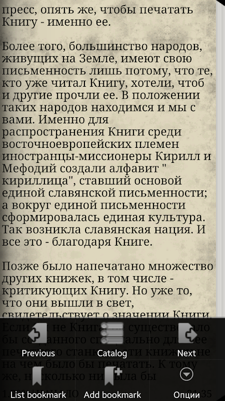 Более того, большинство народов, живущих на Земле, имеют свою письменность лишь потому, что те, кто уже читал Книгу, хотели, чтоб и другие прочли ее. В положении таких народов находимся и мы с вами. Именно для распространения Книги среди восточноевропейских племен иностранцы-миссионеры Кирилл и Мефодий создали алфавит "кириллица", ставший основой единой славянской письменности; а вокруг единой письменности сформировалась единая культура. Так возникла славянская нация. И все это - благодаря Книге.