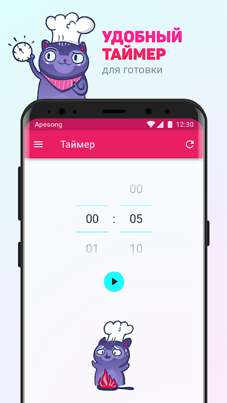 4) кошачий таймер прямо в приложении
