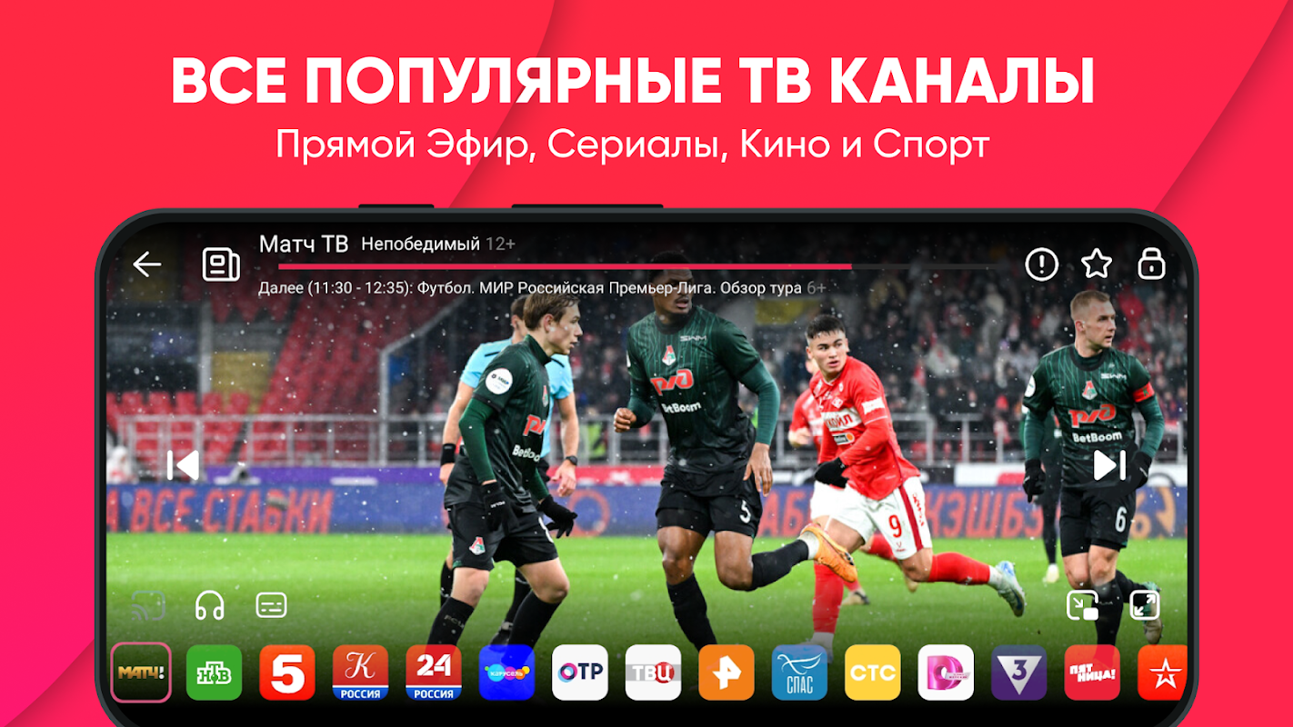 รับชมทีวีดิจิทัลออนไลน์ได้ทันที ให้คุณรับชมทีวีออนไลน์ได้อย่างราบรื่นฟรีทุกที่: TVC, CTV, Russia 24, NTV, TNT, Match TV, Russia 1, Karusel, 2x2, STS และ +TV รวมถึง +TV, C, Domashny, Channel One และรายการทีวียอดนิยมอื่นๆ รวมถึงภาพยนตร์ ข่าว และซีรีส์ยอดนิยม!