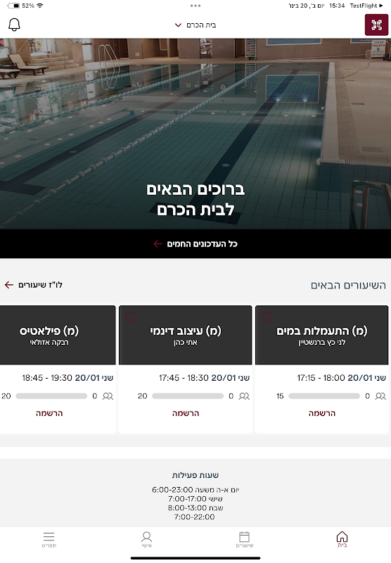 ตั้งแต่วันนี้ การเชื่อมต่อกับสปอร์ตคลับ "Beit HaKerem Estate" อยู่ในสมาร์ทโฟนของคุณ