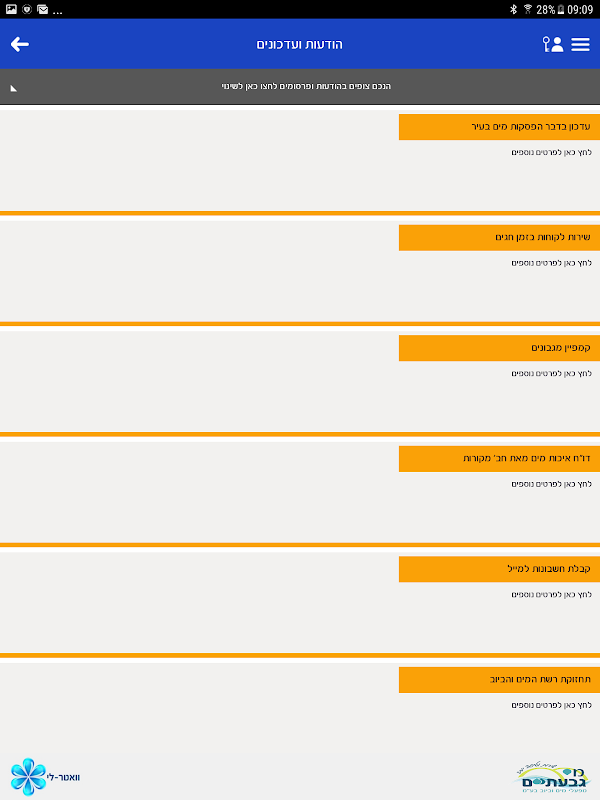 - קבלת הודעות מתאגיד המים שלכם, בתחומים המעניינים אתכם