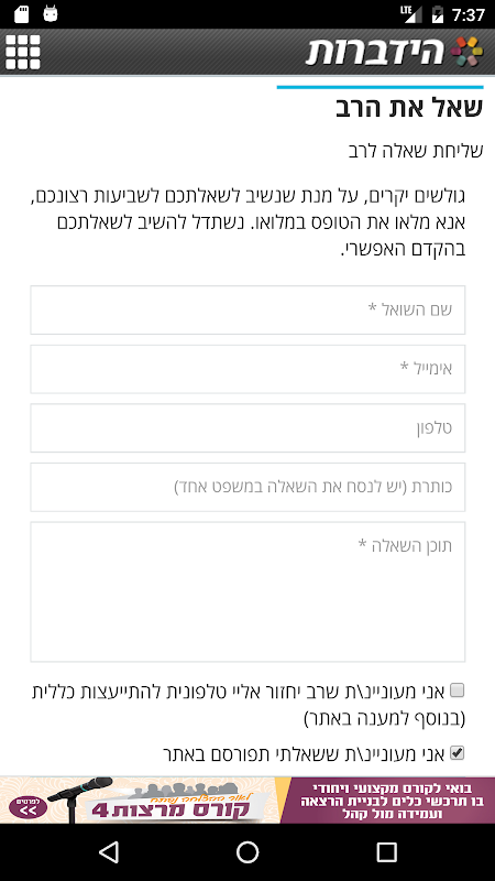 A special application from Talk House. Quick access to "Ask the Rabbi", including sending new questions