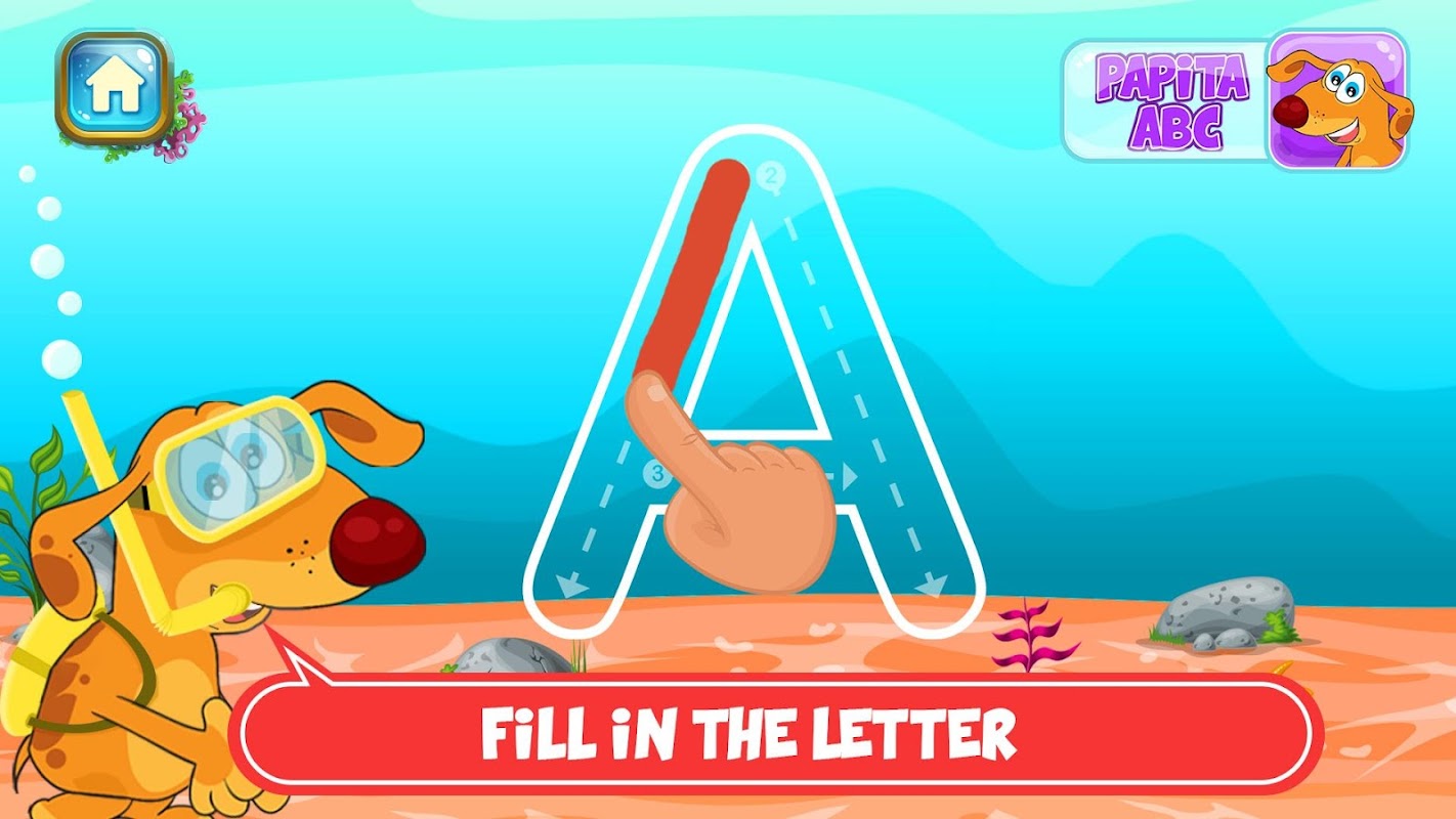 โดยการเลือกตัวอักษรแต่ละตัว เด็กจะต้องเขียนตัวอักษรเดียวกันและเห็นคำสี่คำในตัวอักษรที่อยู่ตรงหน้าเขา ตอนนี้เขาเผชิญกับความท้าทายและต้องเพิ่มแต่ละคำสี่เท่าใต้ทะเลเพื่อปลดปล่อยคำถัดไปและช่วยมันจากความมืดมิดของทะเล