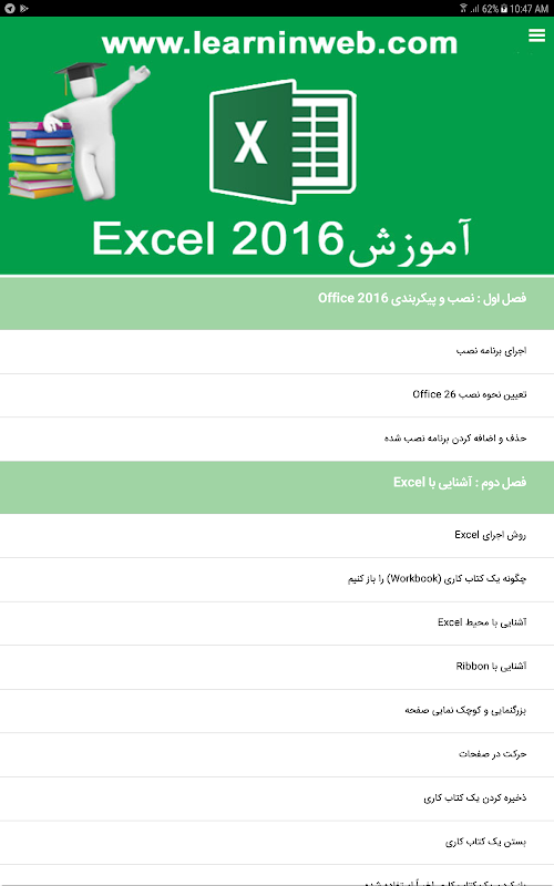 เรียนรู้ Excel 2016 เป็นเสียงโต้ตอบและข้อความ Farsi - บทแรกที่สองและสาม - ฟรี