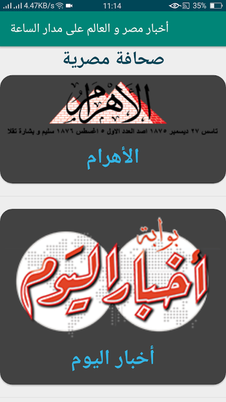แอปพลิเคชันที่มีแหล่งข่าวอียิปต์อียิปต์และต่างประเทศหลายสิบแหล่งที่อัปเดตตลอด 24 ชั่วโมงผ่านฟีด RSS