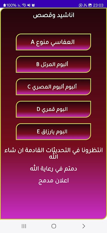🎶 ฟังเพลงอิสลามแบบไม่มีดนตรี เข้าถึงได้โดยไม่ต้องใช้อินเทอร์เน็ตหรือผ่านห้องสมุดออนไลน์ขนาดใหญ่ที่มีนักร้องชื่อดังอย่าง Ibrahim Al-Shaya, Hamoud Al-Khader, Maher Zain และอื่นๆ