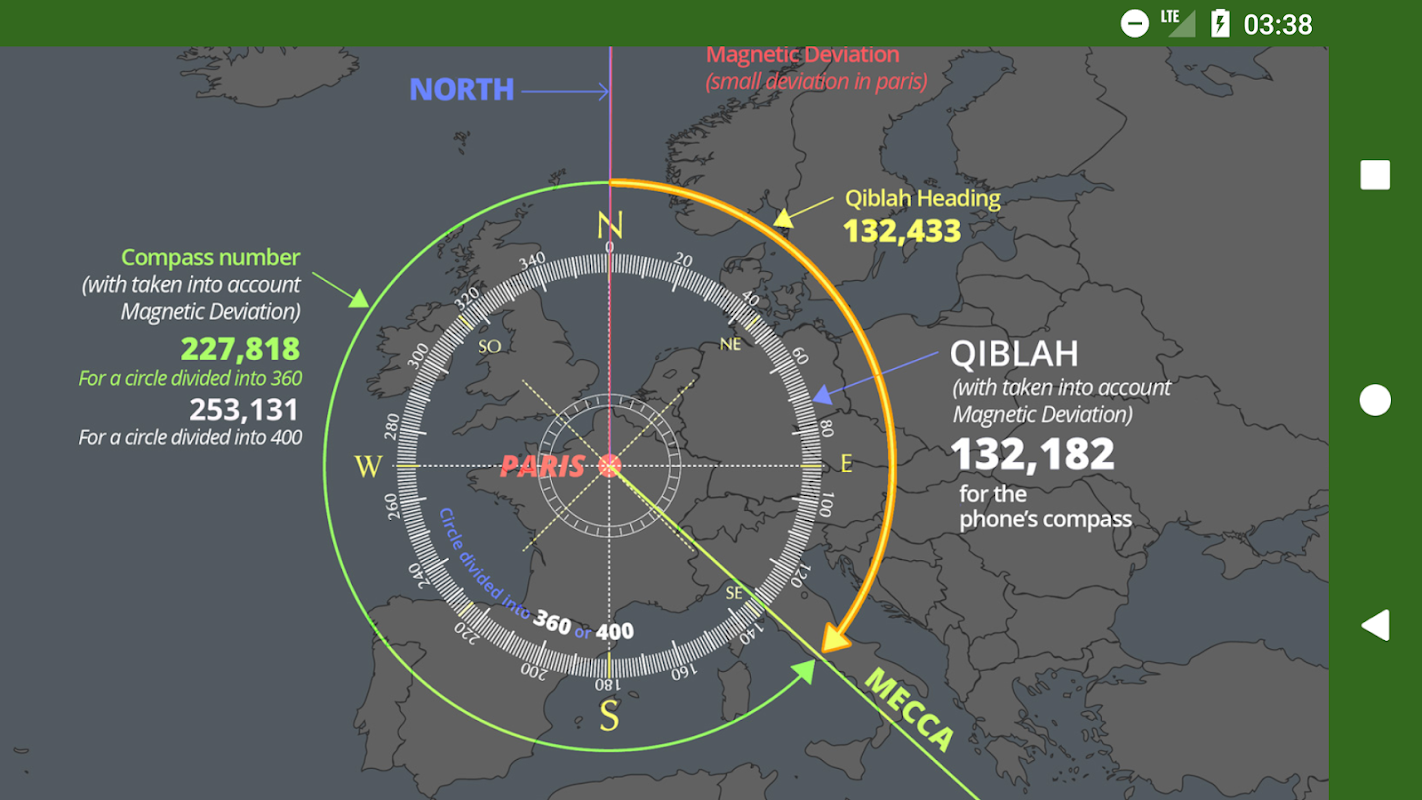 إمكانية نقل العلامة على الخريطة والحصول على اتجاه القبلة وكذلك عدد البوصلة