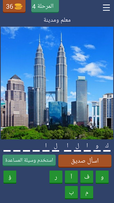 هذي اللعبة تحتوي على 40 معلم لمدن عالمية مشهورة كل ما عليك القيام به هو تخمين اسم المدينة التي يوجد فيا المعلم الموجود في الصورة ولكن قد تحتاج لبعض التركيز في