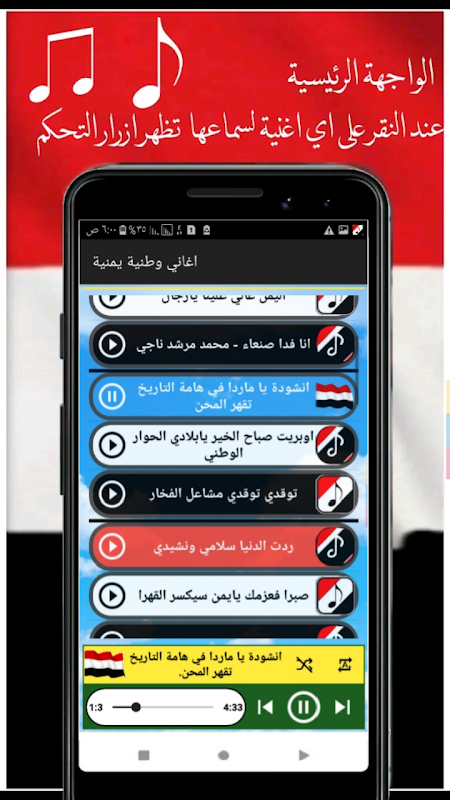 - More Yemeni national songs have been added. The number of songs in the application has become (43) Yemeni national songs🇾🇪.