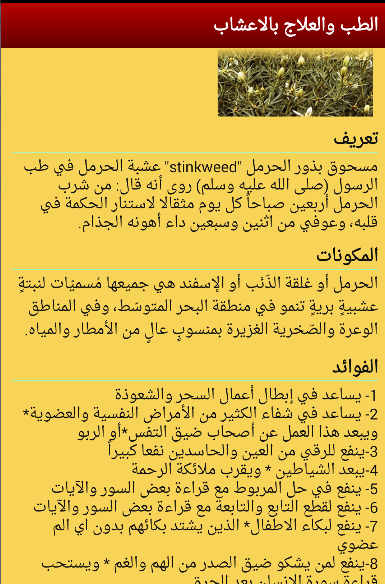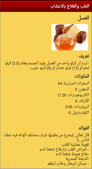 الطب والعلاج بالاعشاب تطبيق يحتوي على موسوعة خاصة بالفوائد الصحية للخضر والفواكه والاعشاب ومختلف الاطعمة التي تحتوي على كل افادة لجسم الانسان .