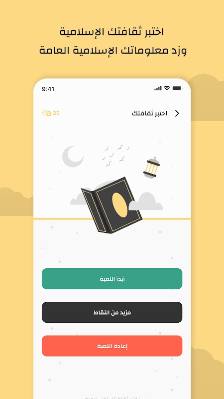 แอปพลิเคชันนี้ช่วยให้ผู้ใช้สามารถจัดหาวิธีการทางเทคนิคที่ทันสมัยเพื่อเสริมสร้างวัฒนธรรมทางศาสนาของเขาผ่านการแข่งขันทางศาสนาที่รวมถึงคำถามทางศาสนาในหัวข้อต่างๆ และประเด็นทางศาสนา และด้วยส่วนต่อประสานที่เรียบง่ายที่ให้สภาพแวดล้อมที่สะดวกสบายสำหรับการเรียนรู้แก่ผู้ใช้