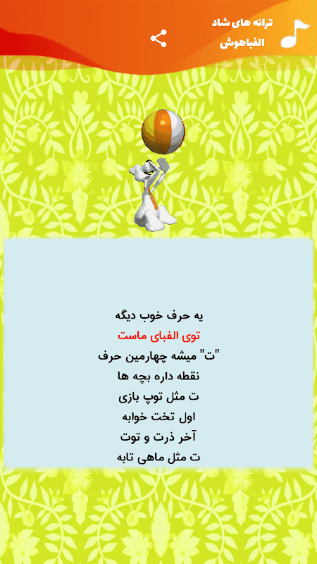 ด้วยซอฟต์แวร์นี้ลูกรักของคุณสามารถเรียนรู้ตัวอักษรภาษาเปอร์เซียพร้อมกับเกมต่าง ๆ และเพลงที่มีความสุข