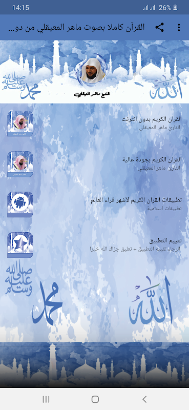 مميزات تطبيق القرآن كاملا بصوت ماهر المعيقلي من دون إنترنت