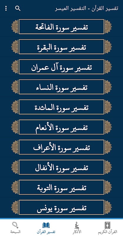 โดยการกดปุ่ม (Next Surah) และ (Previous Surah) คุณสามารถฟัง Surahs ก่อนหน้าของ Surah ที่คุณกำลังฟังรวมถึง Surahs ต่อไปนี้ โปรแกรมยังแสดงระยะเวลาของ Surah แต่ละอันเพื่อให้คุณเป็น ตระหนักถึงสิ่งนี้