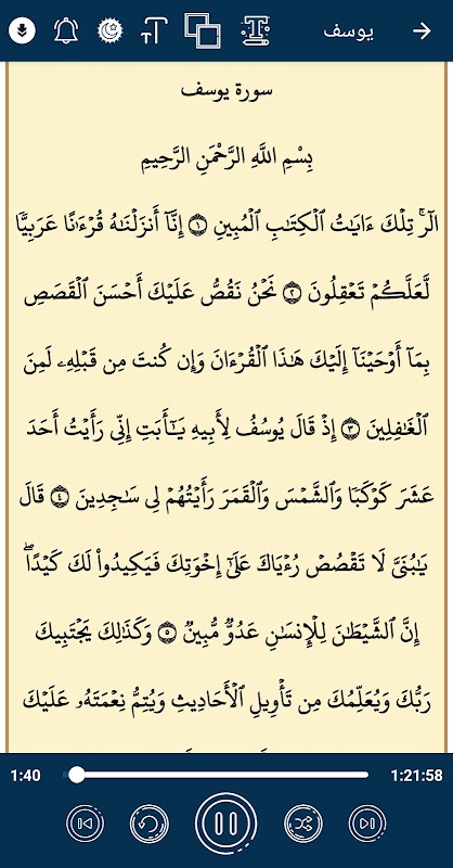 ميزة تكبير الخط لتسهيل قراءة سور القرآن الكريم.