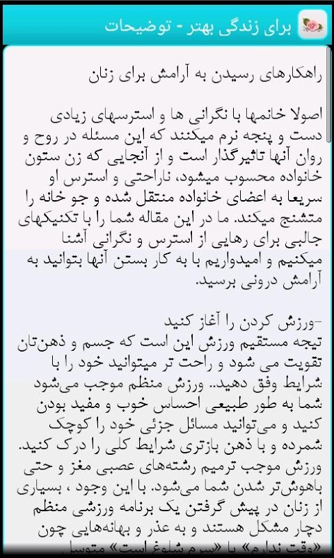 این برنامه شامل سه قسمت برای زندگی بهتر ، تست های روانشناسی و جستجو می باشد.