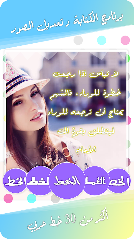 برنامج الكتابة وتعديل على الصور يمكنك من الكتابة بطريقة جد رائعة و جد إحترافية باستعمال خطوط عربية و انجليزية كما يمكنك من اضافة ملصقات مضحكة و كذالك خلفية رائعة كما أنه يمكنك من عمل نص داخل خلفية سوداء رائعة تعبر على اللحظة سعيدة التي أخدت فيها الصورة أو أي شئ أخر ثم مشاركتها عبر جميع وسائل التواصل الإجتماعي .